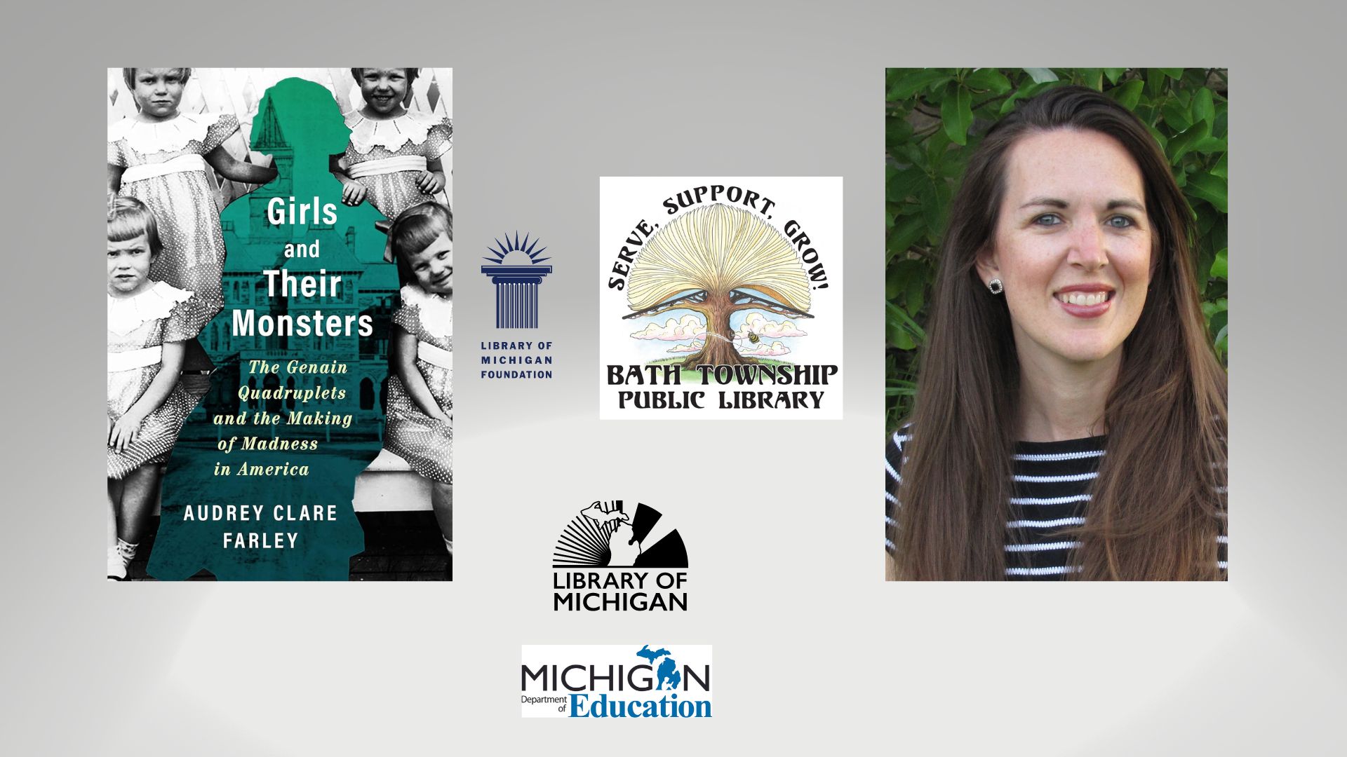 Join us for an author visit, discussion, and book signing with Audrey Clare Farley. She will present her Michigan notable book, "Girl and Their Monsters: The Genain Quadruplets and the Making of Madness in America." June 21, 5:30-7 p.m.